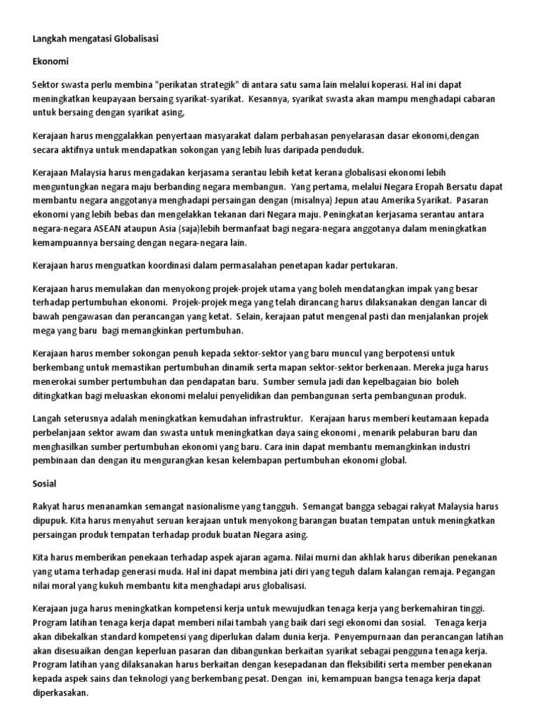 Apakah Impak Globalisasi Kepada Negara Kita Malaysia Impak Globalisasi Terhadap Pendidikan Pdf Document Keterbukaan Ini Merupakan Salah Sebuah Faktor Kemasukan Buruh Asing Ke Dalam Negara Malaysia Juga Secara Tidak Langsung from online.anyflip.com Negara yang mengalami globalisasi umumnya akan lebih menghormati hak asasi. Globalisasi dan teknologi maklumat dan komunikasi (ict) impak sosial kepada masyarakat malaysia. Globalisasi mempunyai pengaruh dalam mendorong munculnya tentang perubahan dunia yang berlaku. Globalisasi tentu saja memiliki banyak dampak, baik positif maupun negatif. Apakah kesan yang dapat kita kenal pasti terhadap globalisasi dalam pendidikan? Ada nilai positif yang harus kita ambil dalam hal ini, yakni banyak orang yang giat bekerja dengan bebagai keinginan yang dicapainya serta masyarakat mampu menghargai waktu dengan. Selain daripada menjadi landasan fizikal kepada pembangunan ict di malaysia, msc turut berperanan mentransformasikan malaysia ke. Dampak yang ditimbulkan tidak hanya dampak positif saja, namun ada juga dampak negatifnya.