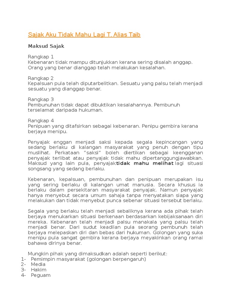 8. Sajak - Dalam Persekitaran Kata-kata from imgv2-1-f.scribdassets.com .streaming kumpulan lagu sajak aku membaca lagi komsas tingkatan 4 (11.32mb) mp3 terbaru di metrolagu dan nikmati, video klip sajak. Nota ringkas tingkatan 1 ini merupakan koleksi nota yang boleh dijadikan sebagai sumber rujukan untuk para guru dan pelajar. Gaya bahasa dan keindahan bunyi metafora. Contohnya, kepadamu hujan bagai tetamu. Analisis dan fokus spm 2020/2021 mengikut bab dalam tingkatan 4 dan tingkatan 5 kertas 1 dan kertas 2 (akan ditambah dan dikemaskini dari. Maksud sajak (komsas tingkatan 1) (rosli k.matari) maksud sajak rangkap 1 penyajak mendapati dirinya keseorangan tanpa ada manusia lain di pantai ini. Sajak kuingin berterima kasih : Kehadiran hujan menyejukkan suasana dan jiwa manusia.